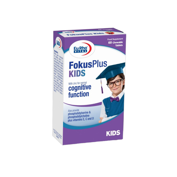 فوکوس پلاس کیدز یوروویتال قرص های جویدنی با طعم توت فرنگی می باشند که مناسب برای کودکان در سنین مدرسه و قبل از آن می باشد.این فرآورده تامین کننده روی، ویتامین های B12 ،C ،D3 ،E به علاوه فسفاتیدیل کولین و فسفاتیدیل سرین در یک ترکیب و فرمولاسیون خاص می باشد.روی یکی از مواد معدنی مهم است که در بسیاری از واکنش ها در بدن نقش دارد، از جمله این ماده در عملکرد طبیعی سیستم عصبی و روان شناختی موثر می باشد. به علاوه ویتامین های B12 و D در تقسیم سلولی نقش دارند. ویتامین های C و E در حفظ سلولها در برابر استرس اکسیداتیو موثر می باشند.فسفاتیدیل سرین و کولین، ترکیبات مهم در ساختار اصلی غشای سلول های عصبی در مغز می باشند.