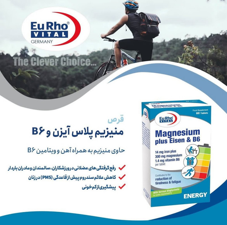منیزیم پلاس آیزن و b6 تامین انرژی و کاهش احساس ضعف و خستگی کمک به تشکیل نرمال گلبولهای قرمز خون به واسطه وجود آهن و ویتامین B6 در منیزیم پلاس آیزن و ب6 فید در حفظ عملکرد طبیعی عضلات و پیشگیری از گرفتگیهای عضلانی ناشی از کمبود منیزیم بسته 60 عددی