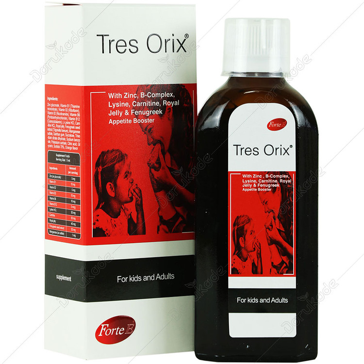 شربت تریس اوریکس، حاوی ویتامین های B1 ،B2 ،B3 ،B6 ،B12، زینک، منگنز، لیزین، کارنیتین، رویال ژلی و عصاره گیاه شنبلیله کمک به بهبود اشتها و وزن گیری کودکان و نوجوانان کم اشتها موثر در رشد جسمی و ذهنی با افزایش دریافت غذا تقویت سیستم ایمنی و افزایش سطح انرژی تریس اوریکس، شربت اشتها آور مناسب استفاده برای کودکان بالای 2 سال با طعم مطلوب پرتقال گروه سنی 3 تا 12 سال: روزانه یک قاشق مرباخوری (5 میلی لیتر) نوجوانان و بزرگسالان: روزانه 10-5 میلی لیتر