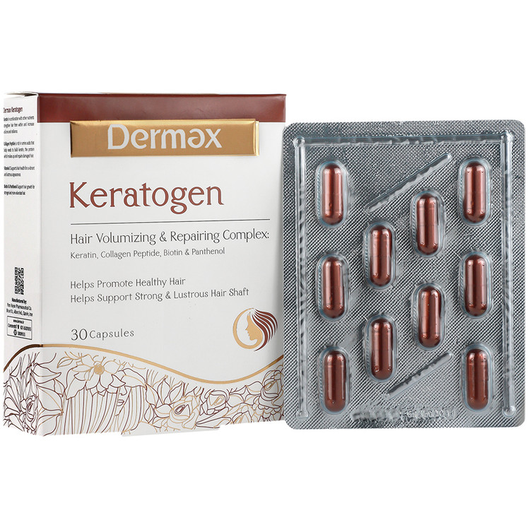 کپسول کراتوژن درمکس با افزایش سطح کراتین و کلاژن در بدن، سلامت مو را بهبود می بخشد. کراتین نقش مهمی در استحکام و انعطاف پذیری مو و پوست دارد.