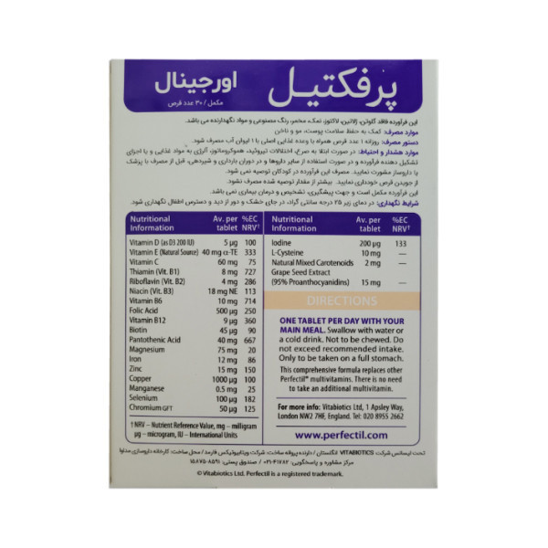 قرص پرفکتیل اورجینال ویتابیوتیکس بسته 30 عددی