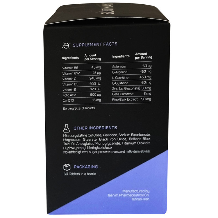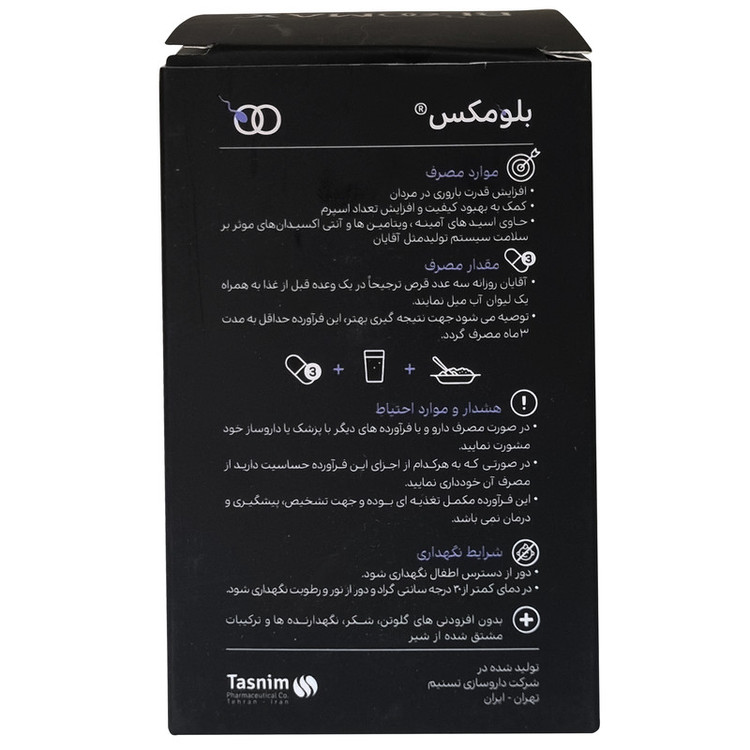 بدون افزودنیهای گلوتن، شکر، نگهدارندهها و ترکیبات مشتق شده از شیر حاوی اسیدهای آمینه، ویتامینها و آنتی اکسیدانها کمک به بهبود کیفیت و افزایش تعداد اسپرم موثر در سلامت سیستم تولید مثل آقایان افزایش قدرت باروری در مردان