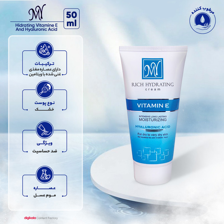 کرم مرطوب‌کننده قوی ویتامین E و هیالورونیک مای حجم 50 میلی‌لیتر