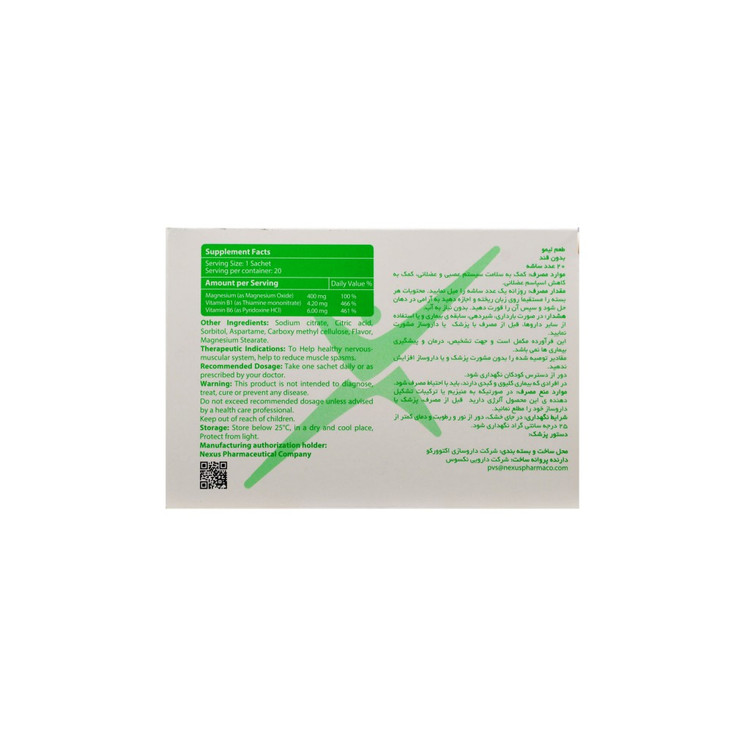 علاوه بر موارد گفته شده ساشه منیزیم پلاس نکستایل در حفظ سلامت قلب و عروق نقش آفرینی می کند به طوری که با کاهش فشار خون و تنظیم ضربان قلب از بیماری های قلبی همچون سکته و حملات قلبی جلوگیری می کند. از دیگر قابلیت بارز این ساشه حفظ سلامت استخوان هاست که درکنار ویتامین دی و کلسیم، منیزیم نیز به افزایش تراکم استخوانی و جلوگیری از بیماری هایی همچون پوکی استخوان کمک می کند. ساشه منیزیم پلاس 400 نکستایل فاقد قند بوده و مناسب افراد دیابتی است و همچنین با طعم دلپذیر لیمو تولید می شود.