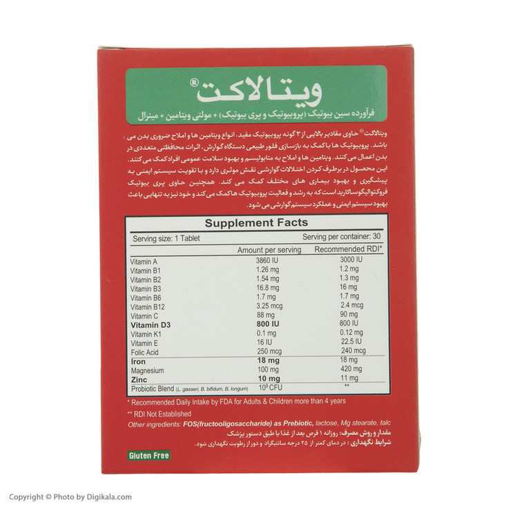 قرص ویتالاکت زیست تخمیر بسته 30 عددی