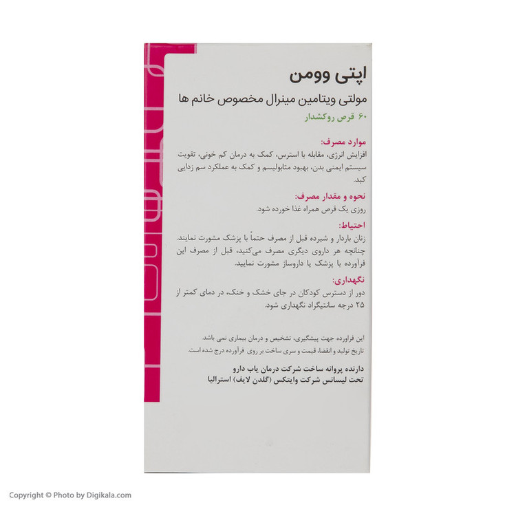 این محصول مکمل غذایی بوده و برای تشخیص، پیشگیری یا درمان نیست. زنان باردار و شیرده حتماً قبل از مصرف با پزشک خود مشورت کنند. در صورت مصرف هرگونه دارو، قبل از مصرف با پزشک مشورت نمایید. مقدار توصیه شده را بدون مشورت با پزشک و یا داروساز خود افزایش ندهید.